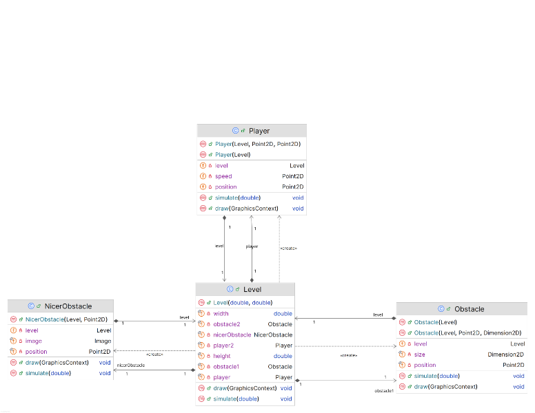 Vytvořte třídu Level. V konstruktoru se budou vytvářet všechny objekty, minimálně objekty Player, Obstacle a NicerObstacle.